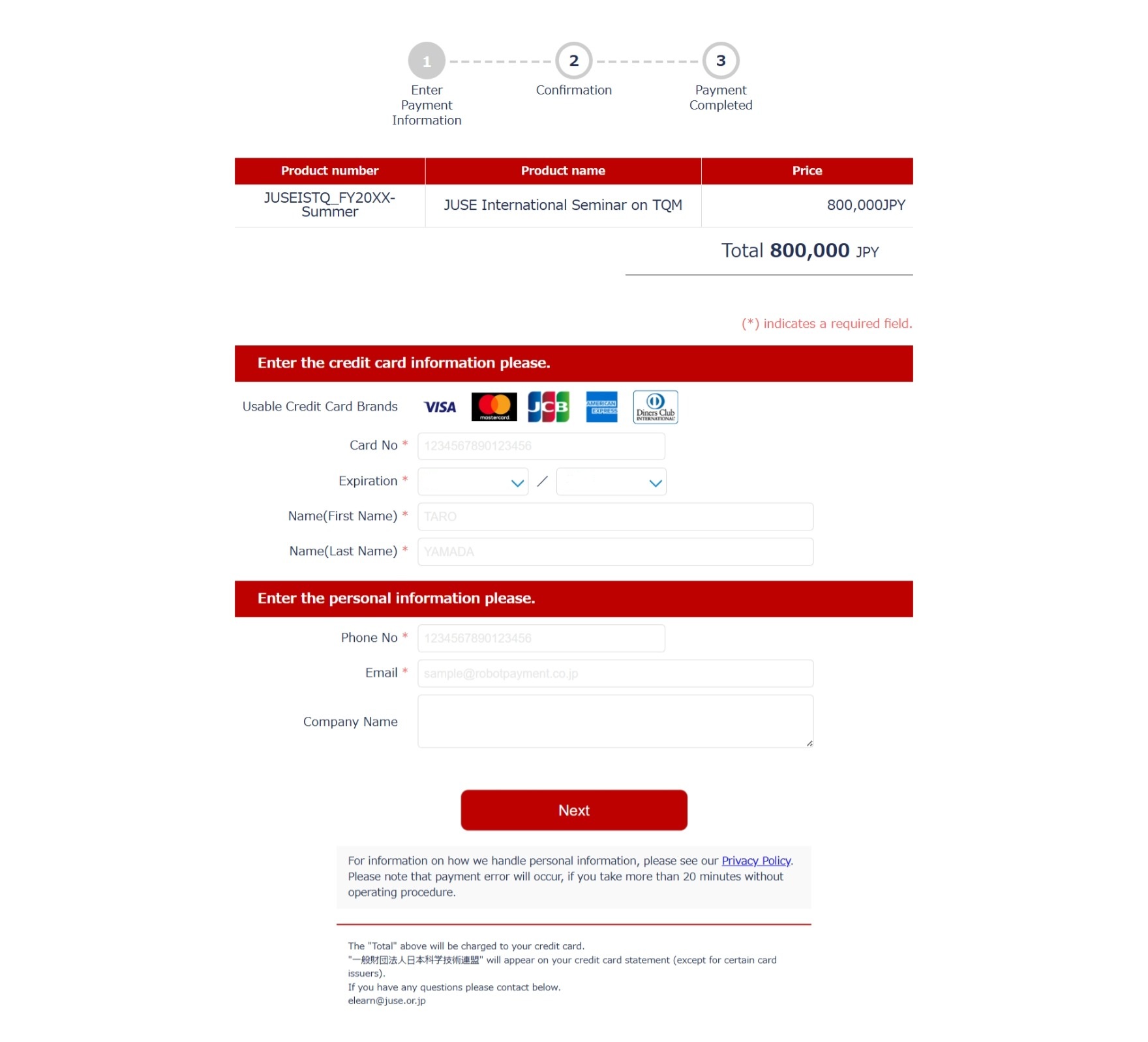 3. After JUSE receiving your application form, we will provide you a URL, the link to pay the application fee (JPY80,000) online. Please complete the payment within 14 days after receiving the link for credit card payment. The application is accepted after confirming the payment of the application fee.