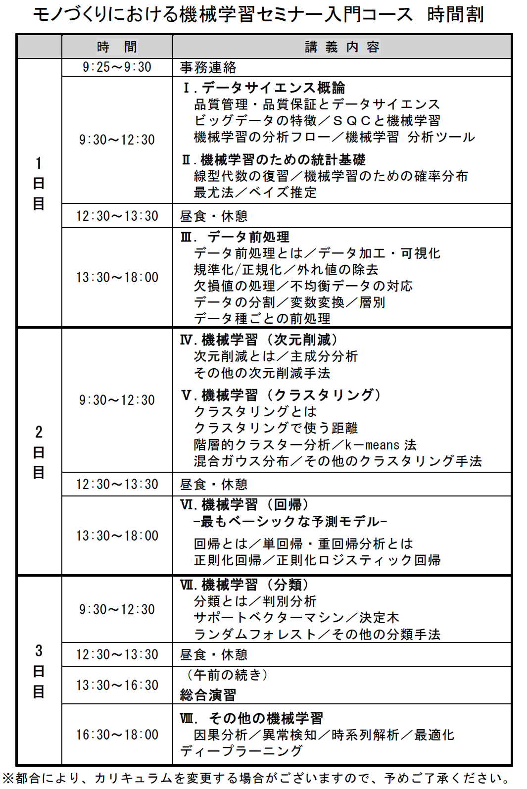 ■ 時間割と講義内容