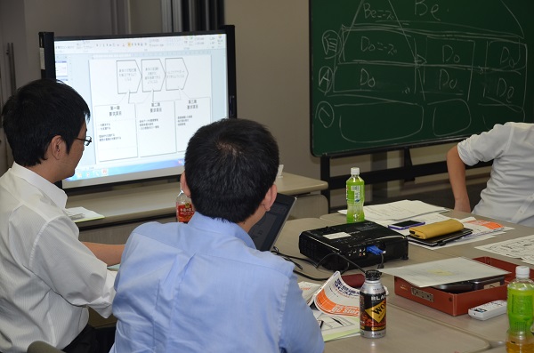 各社、自社製品をテーマに検討を進めていましたが、先にも述べたとおり新しい考え方なども取り入れていましたので、そういった発想の転換が必要なパートは少し苦戦しながら進めていた模様です。また、研修効果を考えて当日に若干のプログラム変更を行いましたが、その追加部分についても少しばかり時間の不足が生じていた模様です。