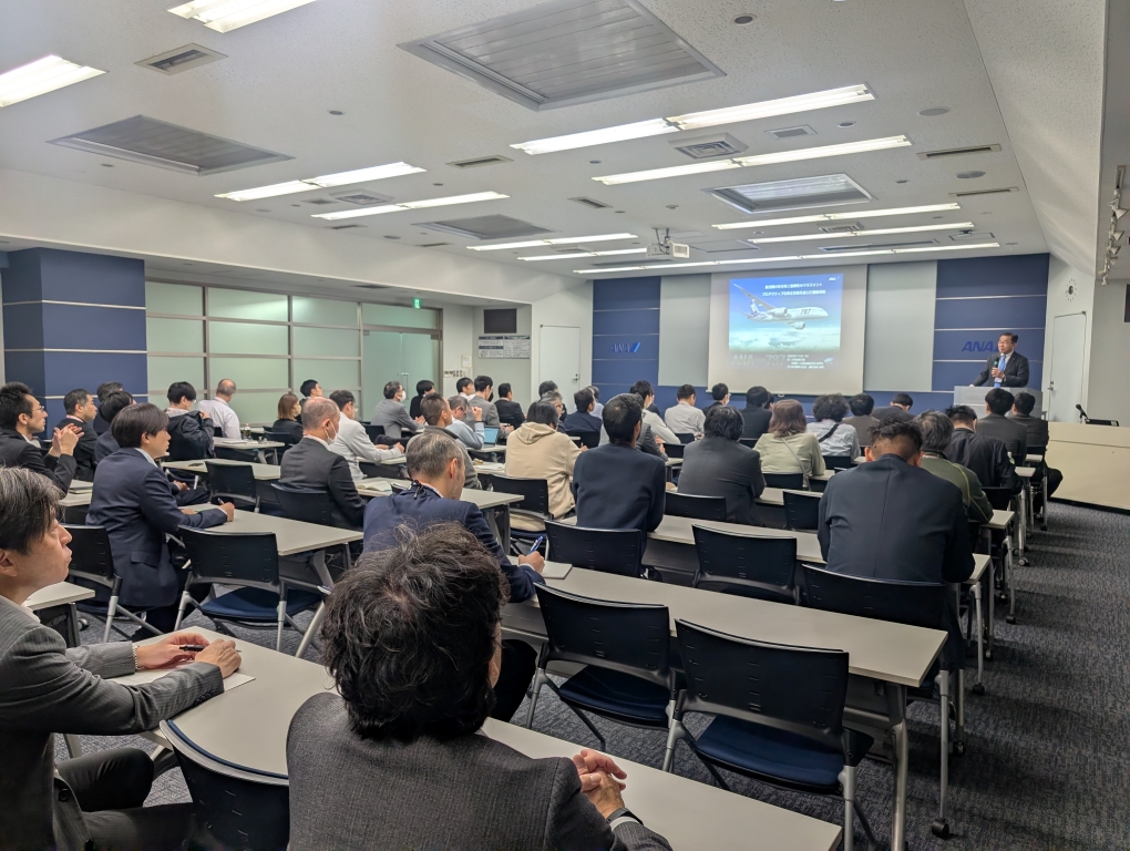 「見学会」では、主に都内周辺に拠点を置く企業や公的機関の研究所、機体整備工場や分析/評価装置メーカなどを訪問し、見学とディスカッションを行うことで知見を高めます。日常の仕事の中では得られない経験をする絶好の機会となること、請け合いです。